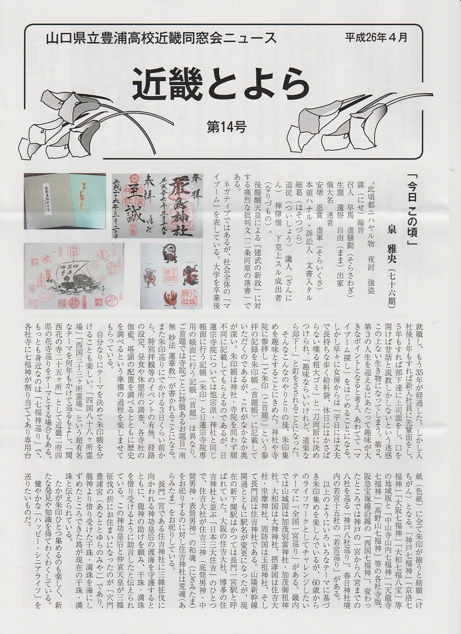 総会では元国税職員・高松税理士事務所高松隆生(74期)さんからタイトル「相続と税金」の講演を、楽しく賜りました。大金持ち?の先輩から「身近な問題として大変参考になった」という感想も頂きました。来賓として4月に着任されたばかりの豊浦高等学校校長の友澤邦昭先生に現在の母校の様子を教えて頂きました。・・・(詳細は近畿豊浦会ニュース 第18回